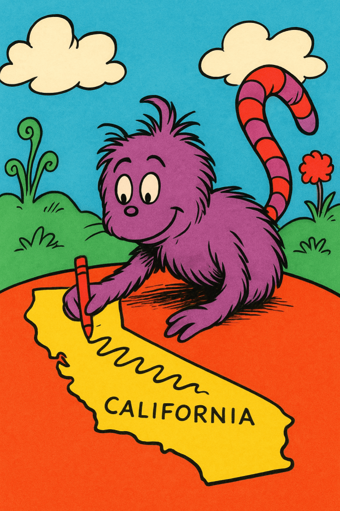 Currently, the Seuss publishers are working on a sequel extolling the virtues of gerrymandering, called “One, Two, Three, Four, When Division Can Mean More. It’s a counting book.